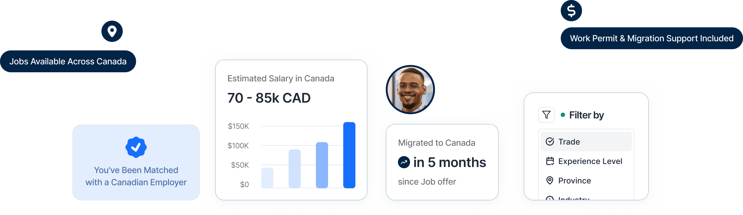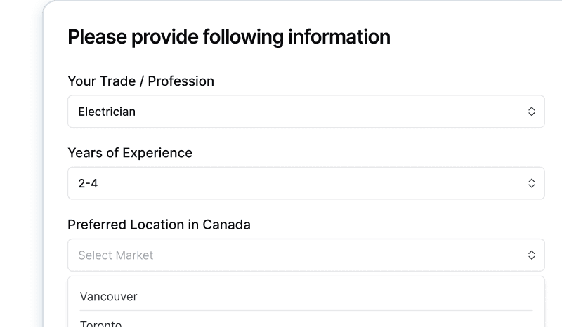 Apply once and get matched with Canadian employers who need your trade skills. We support you every step of the way, from job offer to arrival.