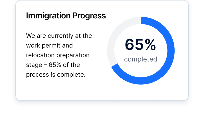 We handle immigration coordination with the candidate, our RCIC partners, and legal advisors. You stay informed while we track work permit progress and timeline to arrival.